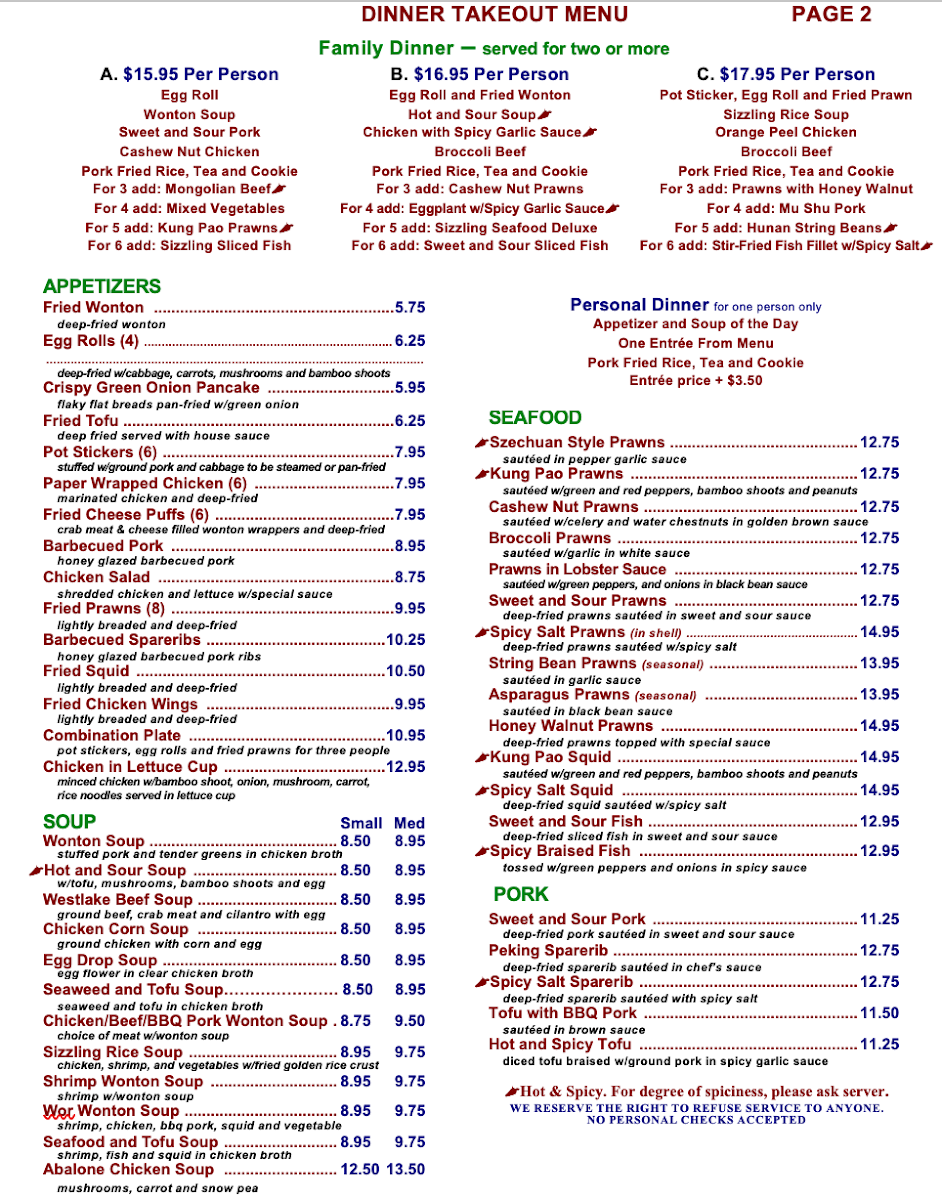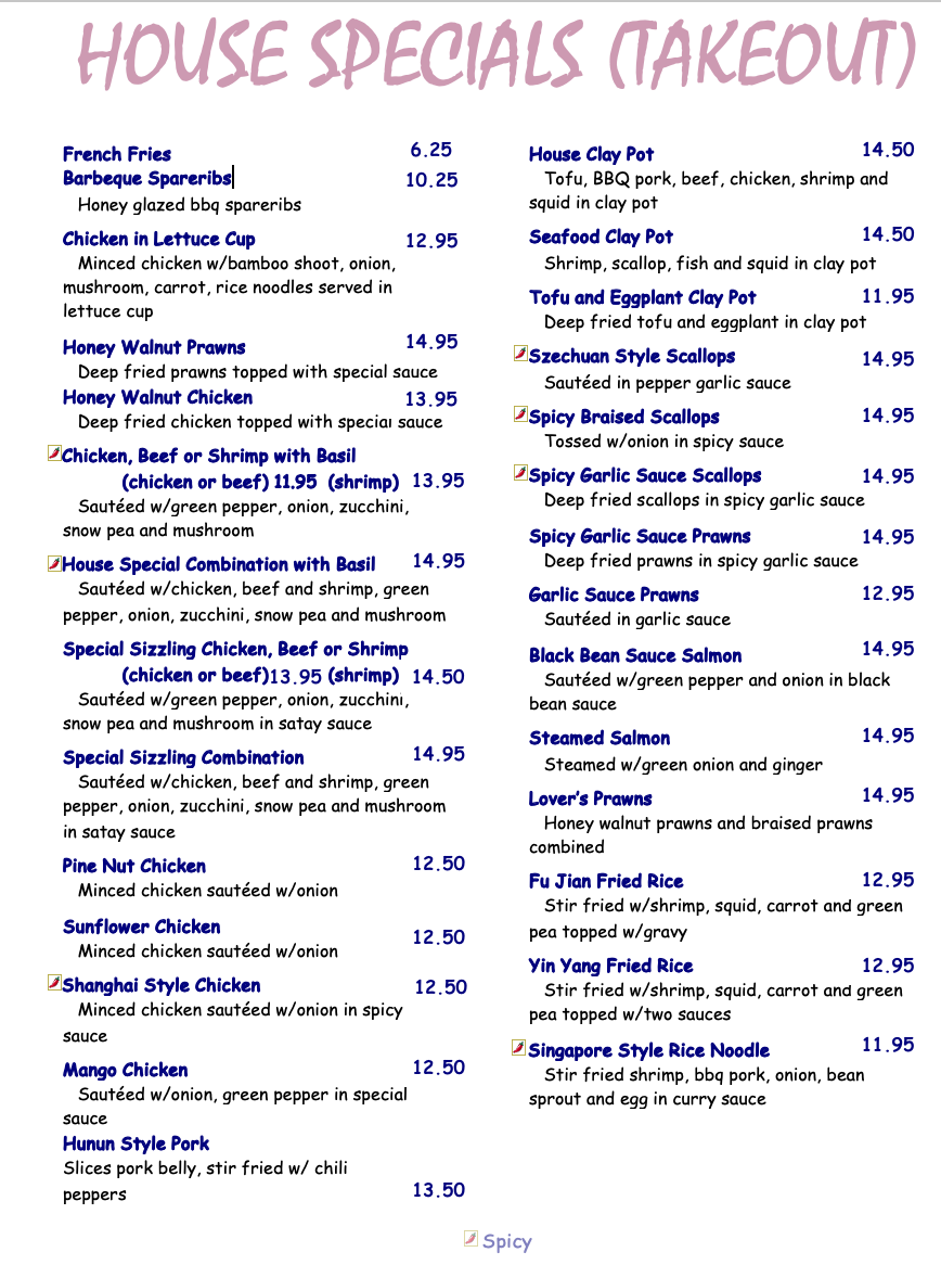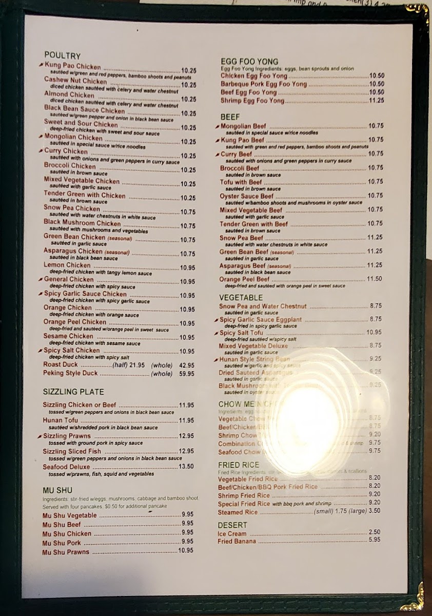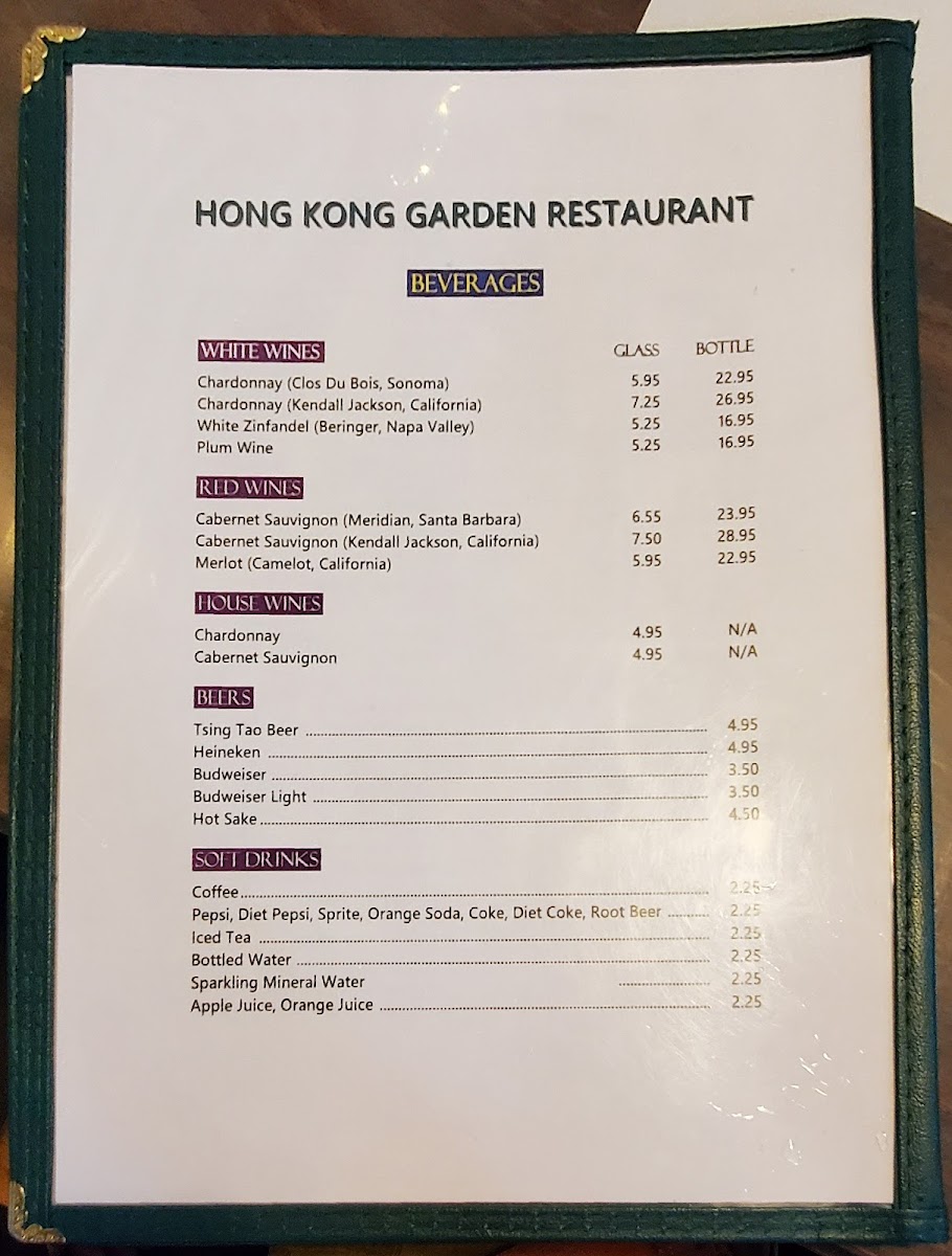 Hong Kong Garden Menu