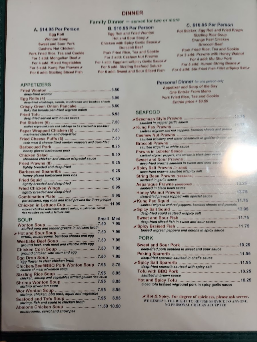 'Hong Kong Garden' also specializes in a comforting selection of Wonton Soups, perfect for a satisfying lunch. Customers rave about the inviting atmosphere and prompt service, providing a serene dining experience ideal for families or casual outings.